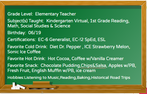 I am so excited to be your 4th grade teacher. It’s going to be a great year full of new friends, new adventures, and new discoveries. This will be my sixth-year teaching at Hamblen Elementary. I am a graduate from University of Houston Clearlake (UHCL) and Lamar University. I enjoy reading, crafting, and traveling to American landmarks. I was born and raised here in Deer Park, Texas. Life has given me many great opportunities including raising children with disabilities specifically Autism and ADHD.