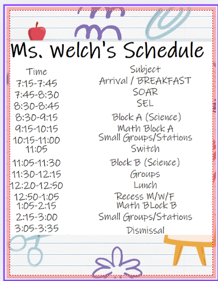 I love to have conversations with parents throughout the year. Please contact me with any questions or concerns. I want to partner with you in order to best support your child. Sincerely, Ms. Welch